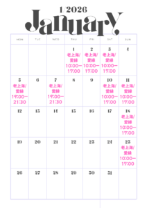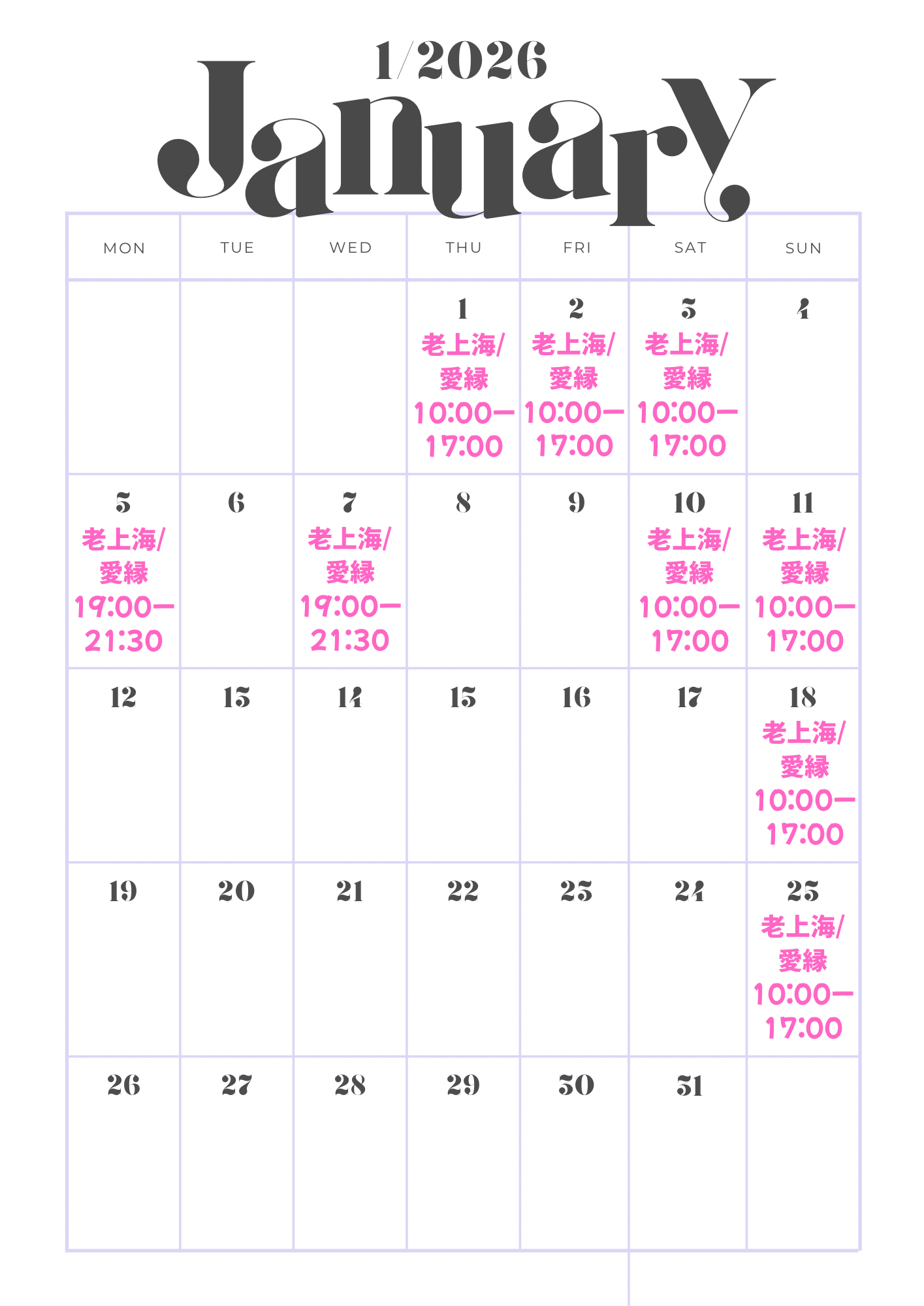 2026年1月 老上海・愛縁 出演スケジュール